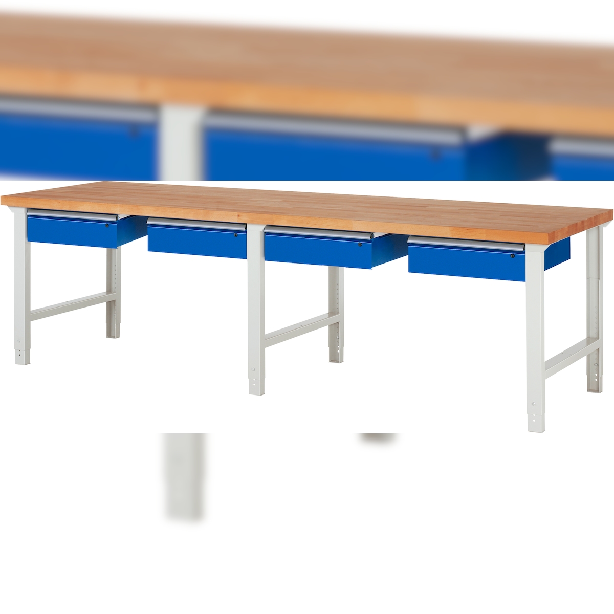 PROREGAL Werkbank Serie 7000 - Modell 7133 | HxBxT 79-114x200x90cm | 4x Schublade | Schubladenmaße 4x90mm | Lichtgrau | Arbeitstisch Werktisch
