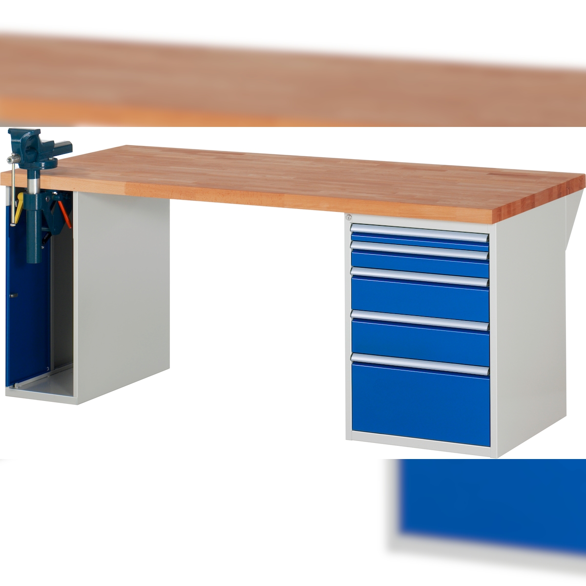 PROREGAL Werkbank Serie 7000 - Modell 7510 | HxBxT 89x150x90cm | 4x Schublade + 1x Schrank inkl. SchPROREGALbstock | Schubladenmaße 3x150 + 1x270mm