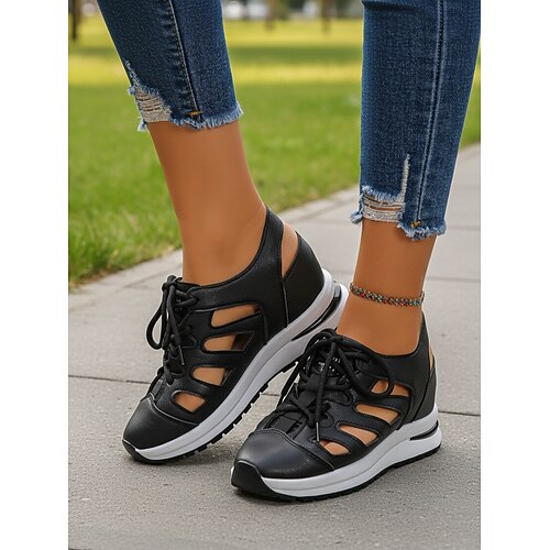 Per donna Pantofole Zoccoli Sandali con la zeppa Taglie forti Pantofole da esterno Esterno Giornaliero Tinta unica Traforato Estate Zeppa Punta tonda Elegante Informale minimalismo PU Mocassino