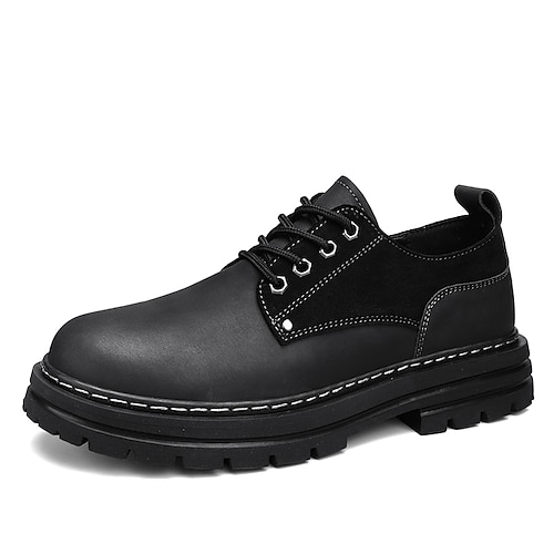scarpe da lavoro stringate da uomo in similpelle color cuoio con suola spessa: calzature resistenti e comode per lavoro, viaggi e uso quotidiano