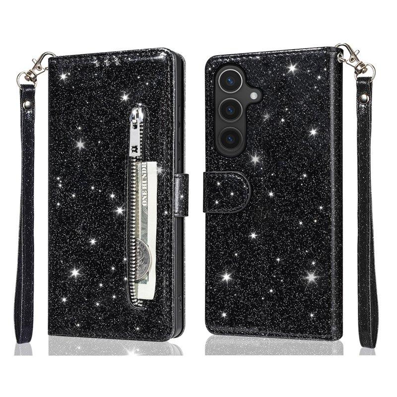 Galaxy S25 Plus Konstläder Plånboksfodral med 2 Rem (Svart)