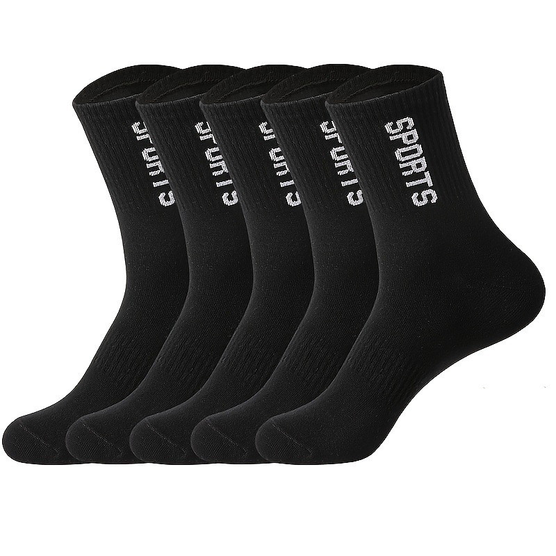 Men's 5 Pairs Multi Packs Socks Running Socks Casual Socks Black White Color Letter Sports Outdoor Daily Vacation Basic Medium Spring Fall Fashion Casual