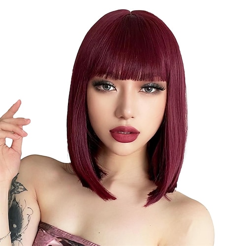 glatte weiße Perücke mit Pony 12 Zoll kurze weiße Bob-Perücken für Frauen synthetische bunte Cosplay-Party-Perücke