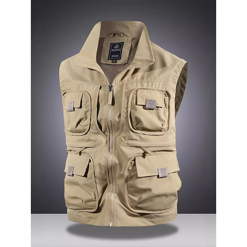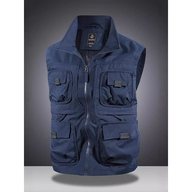 Men's Outdoor Vest Tactical Jacket Sports Outdoor Casual Fishing Camping Hiking Active Spring Fall Multi Pocket Multi Layer Polyester Tactical Zipper Stand Collar Black Navy Blue Khaki Army Green