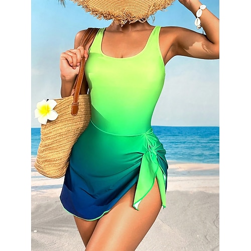 Per donna Costumi da bagno Intero Monokini Taglio alto Costume da bagno Controllo della Pancia Vita alta Snello Senza schiena Vacanza Vintage Ombre Grafico Collo a U Senza Maniche Costumi da bagno