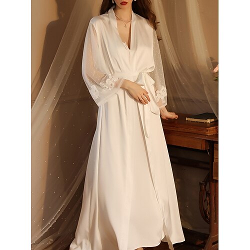 Per donna Accappatoio Casual Comfort Colore Puro Allacciato Casa Quotidiano Manica Lunga Scollo a V Blu Vino Verde Estate Primavera Autunno Inverno Vestibilità regolare