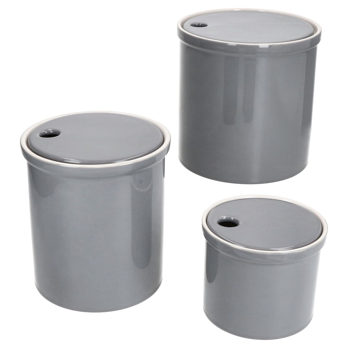 3er Set OSKAR Vorratsdose S, M & L in Grau aus weißem Ton - 1992S + 1993M + 1994L
