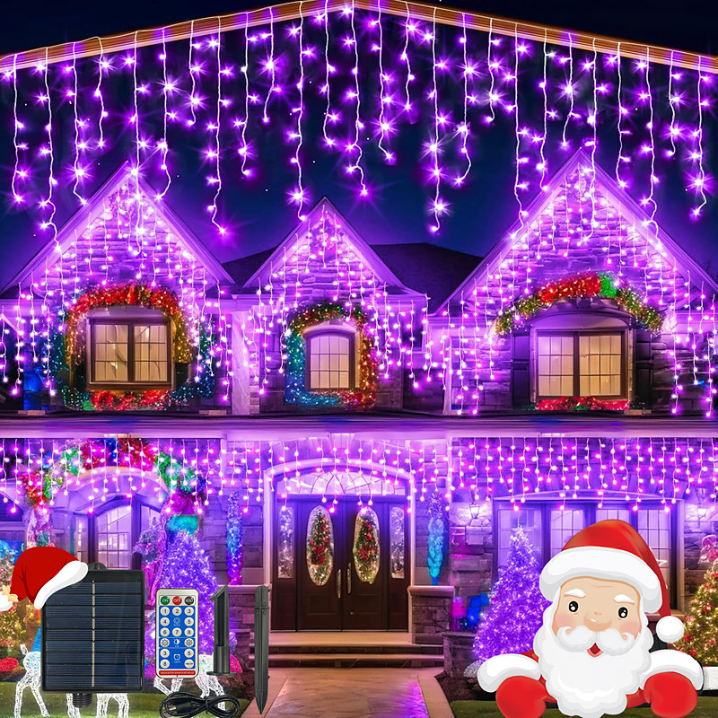 Solar Waterproof Icicle Lights 33ft 400 Leds 48 Drops 8 Function Timer Remote Control Clear Wire Connectable String Lights Courtyard balcony tree porch eaves decorative lights
