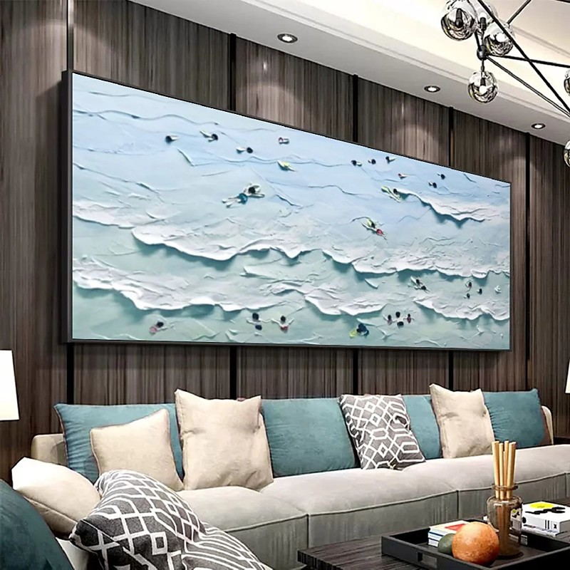 Blue Ocean Wave Painting on Canvas handmade Impasto Textured Painting Designer Serene Canvas Art handmade Choice Minimalist wave painting for Living Room Art Contemporary Art painting wall artwork