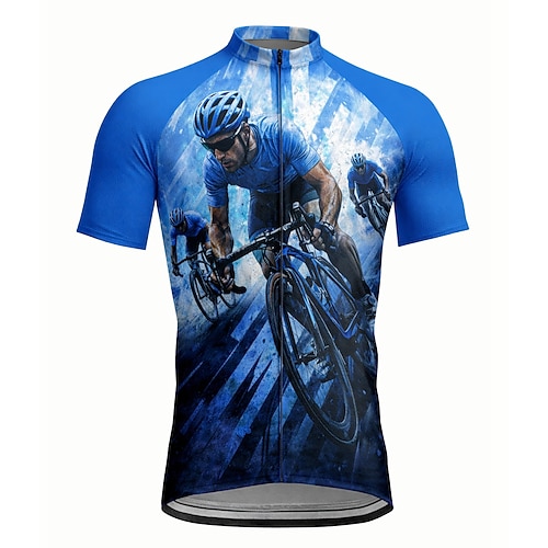 Per uomo Maglia da ciclismo con pantaloncini con bretelle Manica Corta Mountain Bike MTB Ciclismo su strada Estate Primavera Blu Azzurro cielo Cachi Grafico Lettere Numeri Divertente Bicicletta