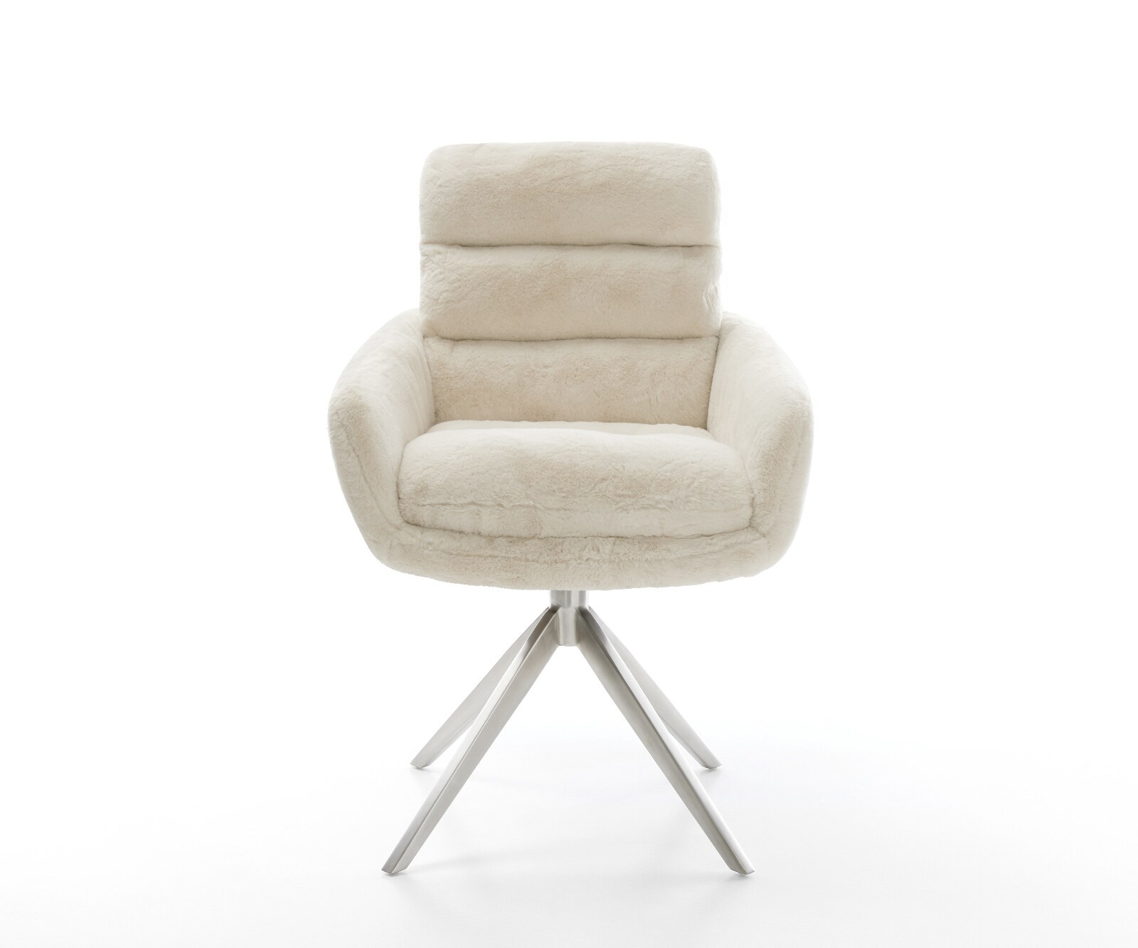 DELIFE Draaistoel Abelia-Flex met armleuning pluchen crème-wit kruisframe breed roestvrij staal 360° draaibaar rocker-functie