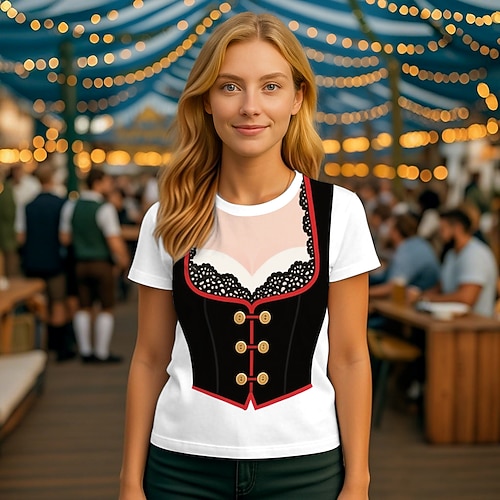 bavarese Monaco Tedesco Corte T-shirt Stampa Dirndl Grafico per Per donna Adulti Stampa 3D per Birra Oktoberfest Casual Quotidiano