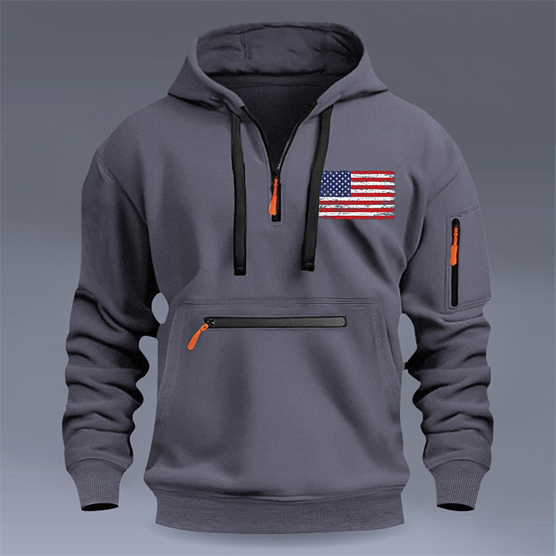 Men's Hoodie Pullover Quarter Zip Hoodie Blue Black Wine Navy Blue Camel Hooded American US Flag Pocket Print Daily Sports Outdoor Sports Streetwear Sportswear Casual Fall Winter Clothing Apparel