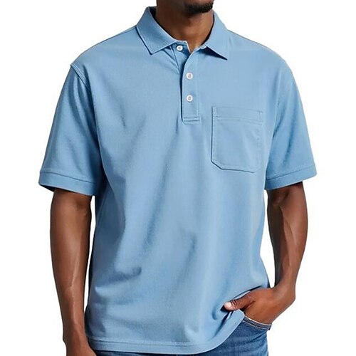 Per uomo Polo Maglia da golf Affari Casuale Classico Manica Corta Moda Tinta unica Bottoni Tasca Estate Primavera Vestibilità regolare Nero Bianco Blu marino Verde Cachi Azzurro chiaro Polo