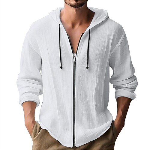 Per uomo Camicia Camicia Estiva Camicia casual Camicia da Spiaggia Marrone Scuro Nero Bianco Blu marino Azzurro cielo Manica Lunga Semplice Con Cappuccio Vacanza Casuale Con zip Abbigliamento Moda