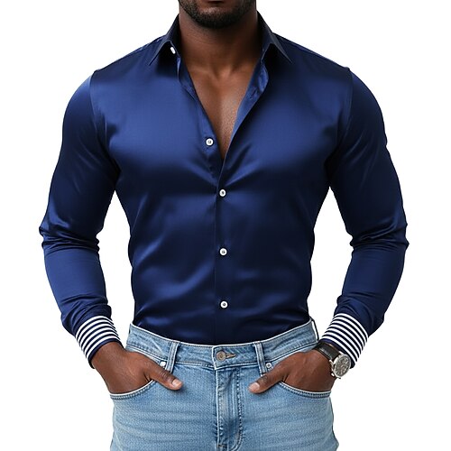 Per uomo Camicia Camicia in raso Camicia elegante Camicia casual Camicia con Bottoni Camicia da Ballo Semplice Matrimonio Formale Nero Vino Blu marino Blu reale Manica Lunga Bavero Tutte le stagioni