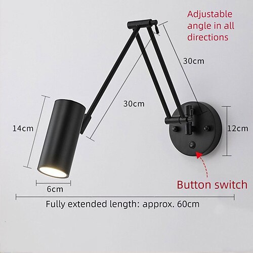 Lampada da parete vintage industriale con braccio oscillante, interruttore dimmerabile, regolabile, braccio lungo dorato, lampada da lettura da parete, lampada da parete per testiera da camera da