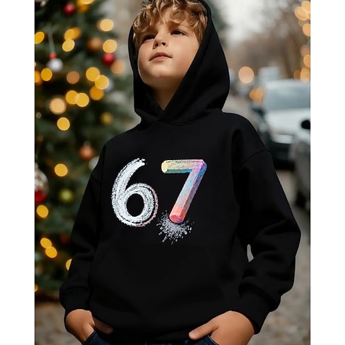 Unisex 3D Grafik Lustiger Slang 67 Kapuzensweatshirt Pullover Langarm 3D-Druck Frühling Herbst Sport Mode Streetwear Kinder 4-12 Jahre Mit Kapuze Lässig Täglich Outdoor Normale Passform
