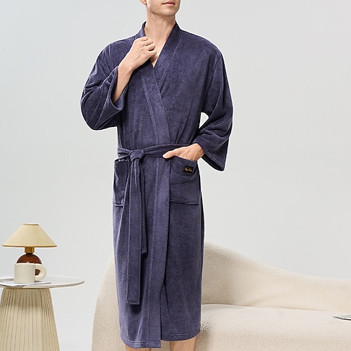 Per uomo Pigiama Pigiami Accappatoio Semplice Moda Elegante Classico Casa Quotidiano Da letto Flanella Poliestere Calore Termico Comodità Morbido Scollo a V Manica Lunga Autunno Inverno Nero Bianco