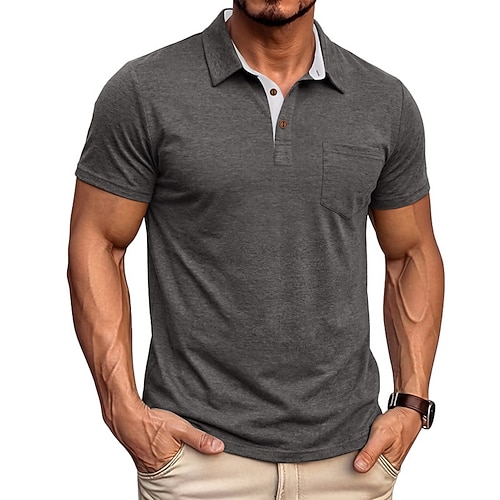 Per uomo Maglia da golf Polo Piqué Affari Casuale Classico Manica Corta Moda Essenziale Tinta unica Bottoni Estate Primavera Autunno Vestibilità regolare Grigio scuro Bianco Grigio chiaro Cachi