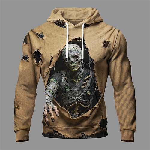 Halloween Herren Schädel Monster Kapuzensweatshirt Mode Täglich Lässig Langarm Mit Kapuze Urlaub Party Streetwear Festival Khaki Kordelzug Drucken Herbst Winter Designer S M L XL 2XL 3XL