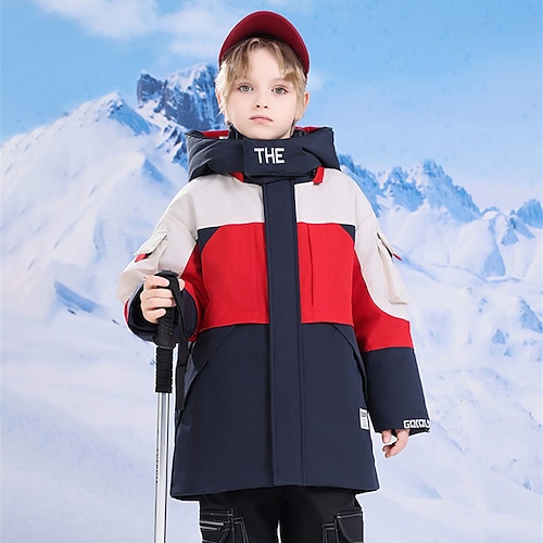 Kinder Jungen Daunenjacke Outdoorjacke Kapuzenjacke Daunenjacke Oberbekleidung Farbblock Langarm Tasche warm halten Winddicht Mantel Outdoor Täglich Basic Schwarz Weiß Rote Winter Ab 4 Jahren