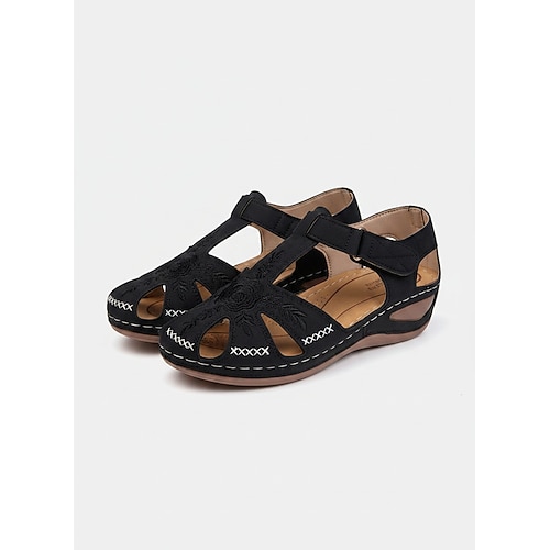 sandali casual da donna comodi – sandali da passeggio con supporto plantare vintage in velcro con design cavo per l'estate e l'outdoor