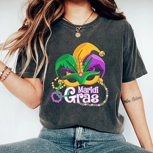 Per donna maglietta Cotone Alfabetico Stampa Carnevale Giornaliero Fine settimana Di tendenza Manica corta Rotonda Nero Primavera estate