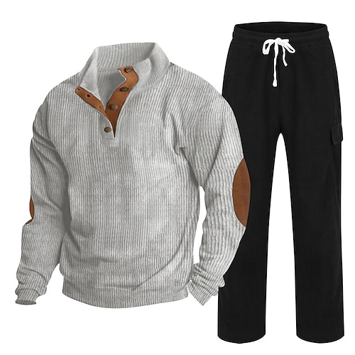 Per uomo Maglia Tuta da Ginnastica Set di abiti Collo alla coreana All'aperto Quotidiano Sportivo Coulisse Tasca Blocco di colori Nero Blu marino Marrone Poliestere Velluto a coste Abbigliamento
