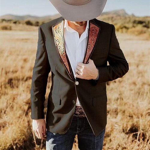 Per uomo Blazer Affari Cocktail party Ricevimento di matrimonio Moda Casual Primavera Autunno Poliestere Blocco di colori Patchwork Tasca Confortevole Monopetto Giacca Nero Beige