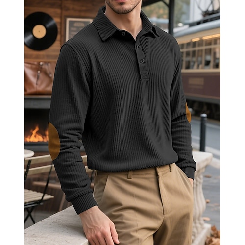 Per uomo Camicia di Velluto a Coste Maglia da golf Lavoro Casuale Bavero Manica Lunga Essenziale Moderno Blocco di colori Bottoni Tasca Frontale Primavera Autunno Vestibilità regolare Nero Bianco