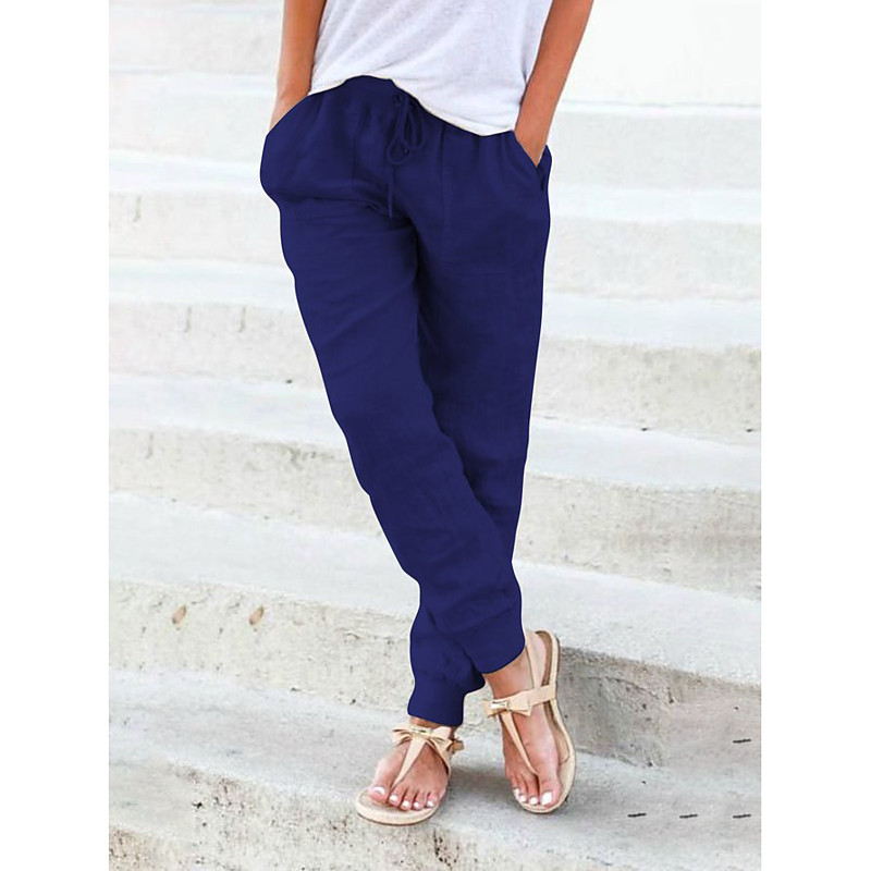 Women's Joggers Normal Faux Linen Plain Yellow Army Green Fashion Mid Waist Full Length Casual Weekend Autumn / Fall