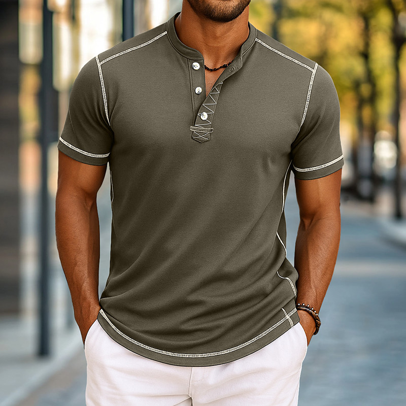 Men's Henley Shirt Tee Top Plain Henley Street Vacation Short Sleeve Button Pocket Clothing Apparel Fashion Designer Basic