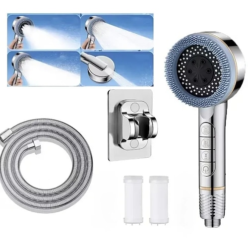 Soffione doccia portatile ad alta pressione da 5 pezzi, quattro modalità di spruzzo, soffione doccia a goccia d'acqua ionica, montaggio a parete, con interruttore on/off, massaggiatore doccia filtrato