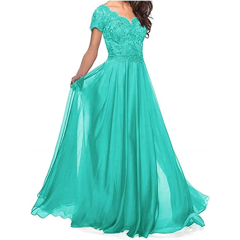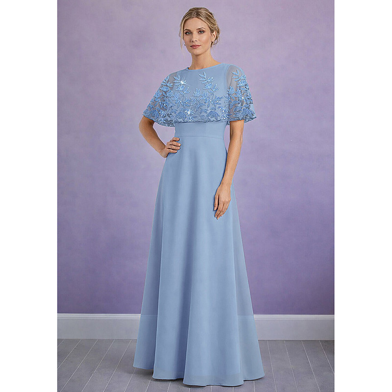 A-Line Dress Floor Length Wedding Guest Dress Formal Dresses Evening Gown Mother of the Bride Dress Short Sleeve Crew Neck Elegant Simple Casual Formal Chiffon Shawls with Beading Appliques