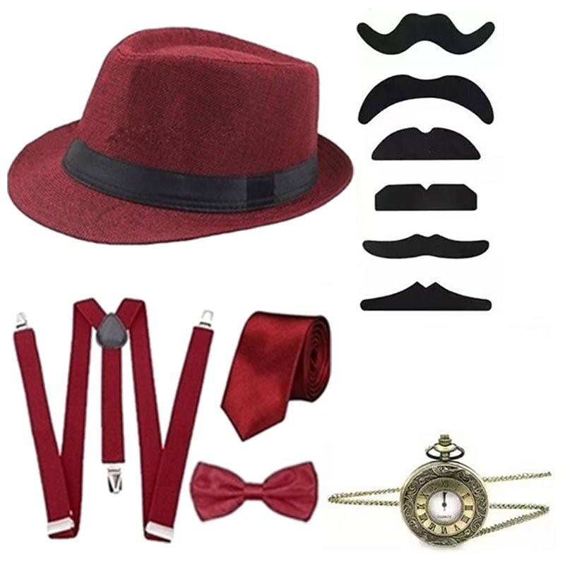Set Vintage Retro Vintage Roaring 20s Accesories Set Fedora Hat with Accessories The Great Gatsby Gentleman Halloween Fancy Dress Men's 5 PCS Halloween Carnival Party Masquerade Adults Hat Suspenders