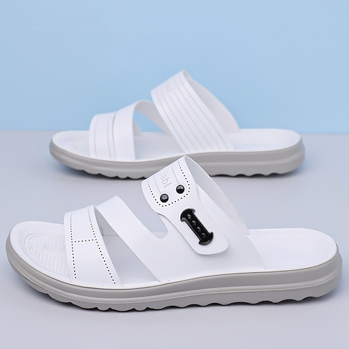 Sandali da uomo in similpelle bianca con fibbia, suola morbida, comodi, perfetti per la spiaggia e le vacanze, scarpe casual.