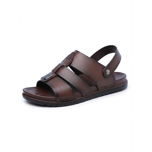 Sandali estivi casual da uomo in similpelle marrone, traspiranti, facili da indossare, ideali per vacanze, attività all'aperto e tempo libero quotidiano.