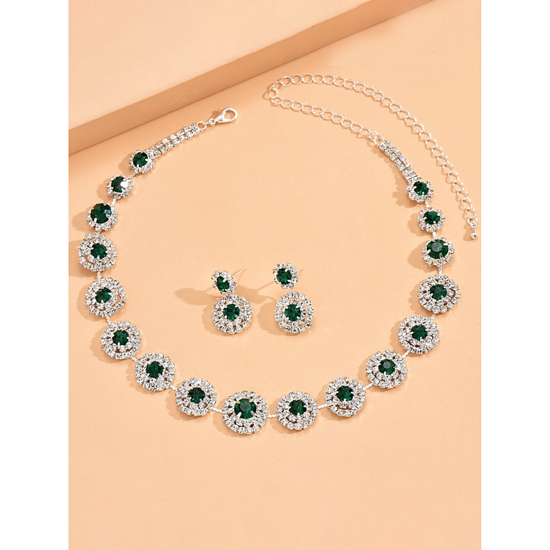 Women's Sparkling Crystal Jewelry Set - Statement Necklace, Dangle Earrings Hand Chain Bracelet Ring Combo, Luxury Rhinestone Accessories for Proms, Balls Party Events