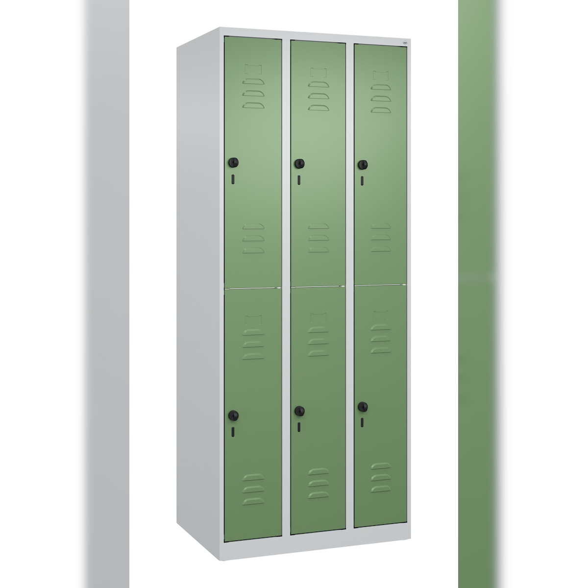 C+P Spind Classic PLUS, 6 Abteile, HxBxT 185x75x50cm, Sicherheitsdrehriegel, Hellgrau/Resedagrün von PROREGAL