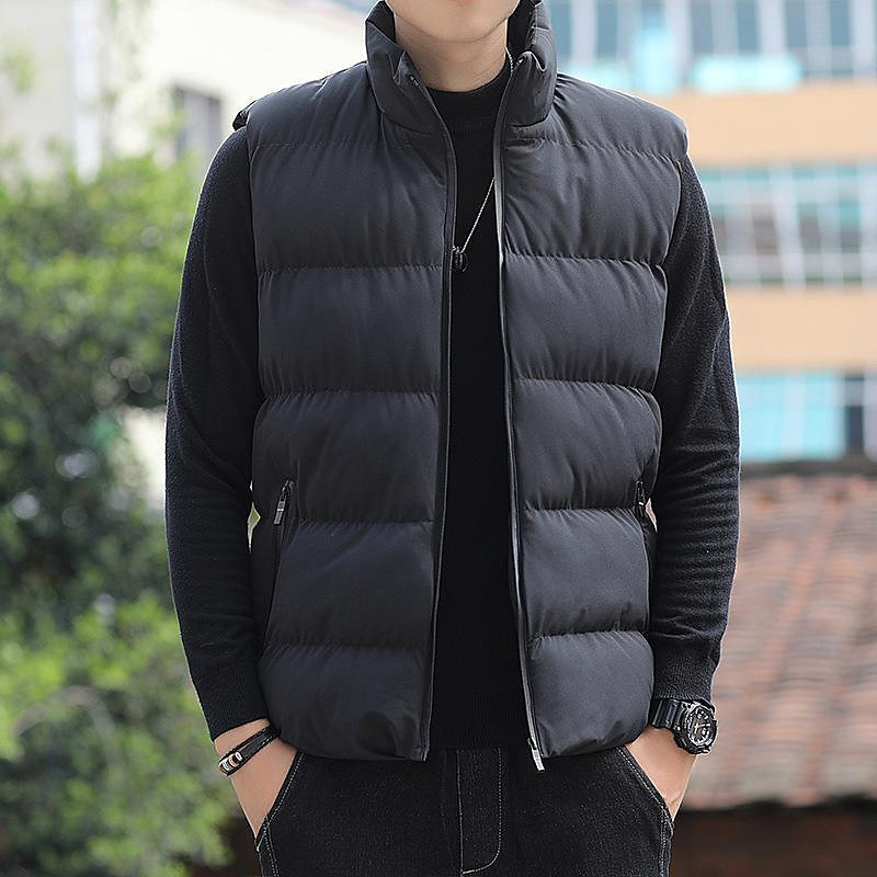 Men's Quilted Vest Daily Casual Fall Winter Pocket Polyester Comfortable Solid Color Zipper Stand Collar Black Khaki Army Green Dark Blue Vest