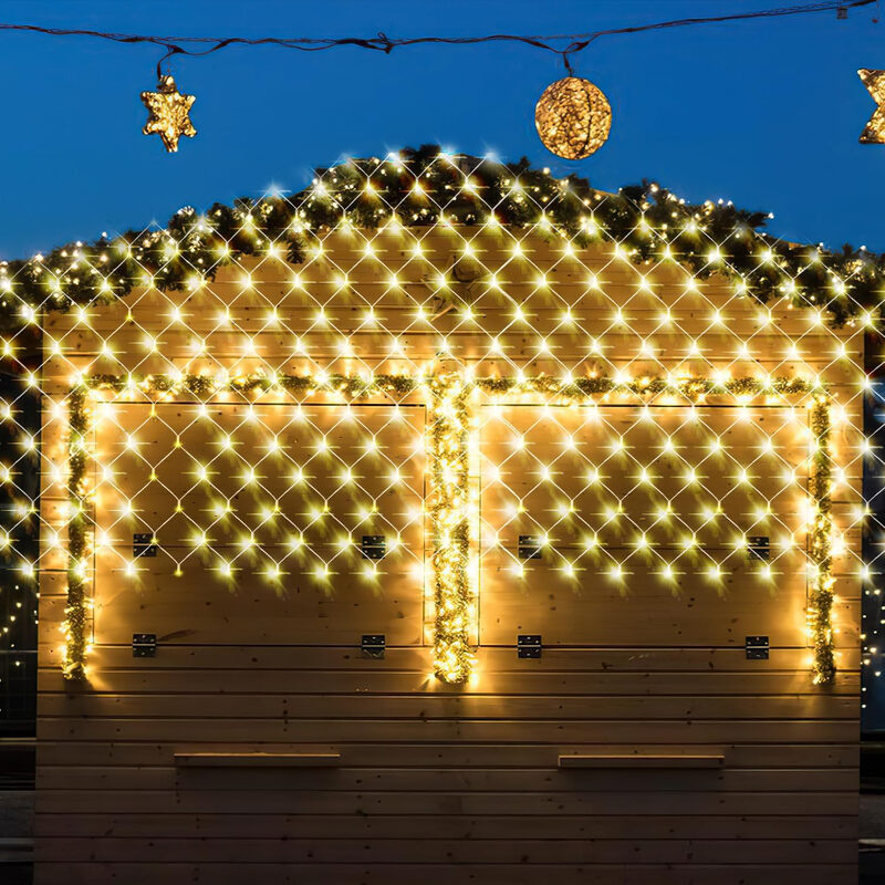 Yakimz LED-Lichternetz Outdoor 4,5×1,6m 300 LEDs Warm White Fairy Lights 8 Modi Steuerung Outdoor wasserdicht 31V