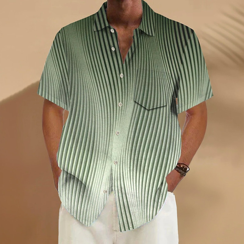 Men's Geometric Gradient Striped Shirt Summer Shirt Button Up Shirt Short Sleeve Fashion Casual Outdoor Vacation Dailywear Summer Spring Turndown 3D Print Collared Shirts Front One Pocket Blue Purple