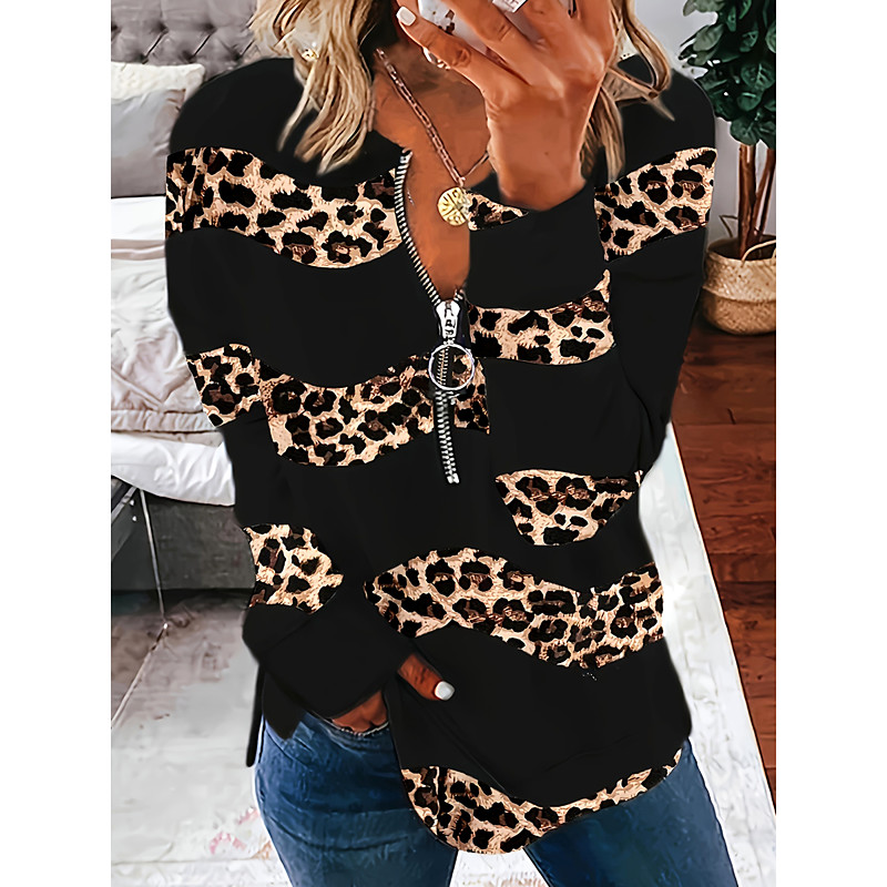 Women's Tunic Graphic Animal Leopard Vintage Fashion Stylish Long Sleeve Crew Neck Regular Tops Daily Zipper Print Brown Spring Fall Winter