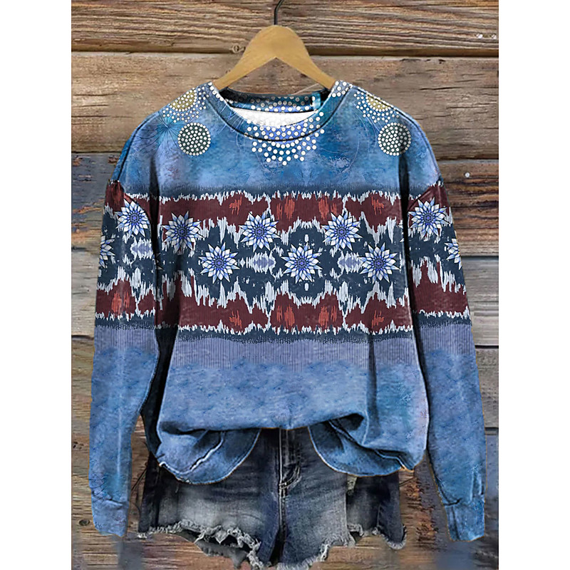 Women's Pullover Fashion Ethnic Print Geometric Tribal Street Casual Round Neck Print Loose Fit Long Sleeve Yellow Red Brown Dark Blue Gray Spring Fall Winter