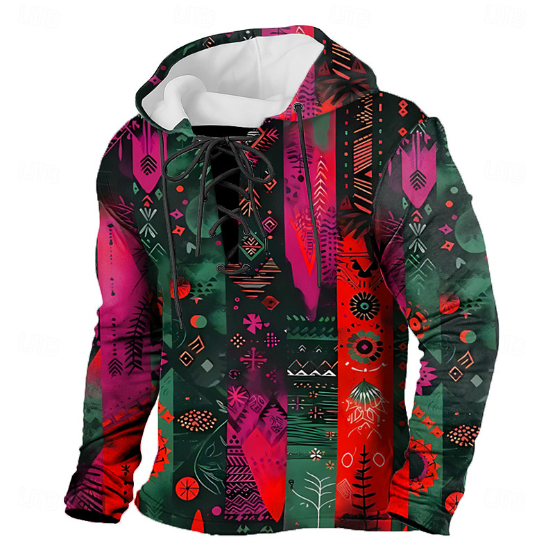 Men's Patchwork Tribal Hoodie Sweatshirt Fashion Ethnic Vintage Retro Long Sleeve Hooded Outdoor Home Yellow Red Purple Drawstring Fall Winter Designer S M L XL XXL XXXL