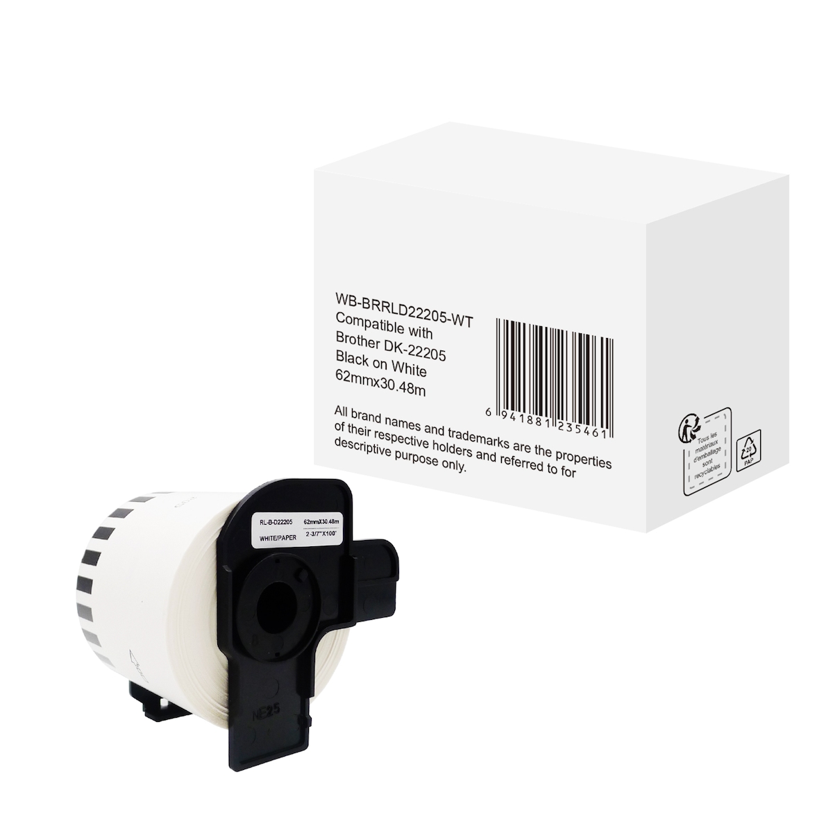 Etikett wie Brother DK-22205 62mmx30,48m schwarz auf weiß