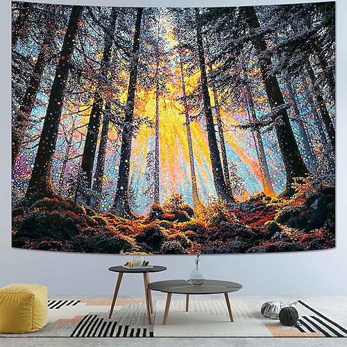arazzo a luce nera, reattivo ai raggi UV, fosforescente, lampione, psichedelico, nebbioso, natura, paesaggio, arazzo da appendere, murale, per soggiorno, camera da letto, festa luminosa
