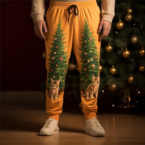 gatto cane albero pantaloni casual con stampa 3d da uomo pantaloni della tuta pantaloni da jogging strada all'aperto casual quotidiano poliestere giallo verde s m l pantaloni elastici a vita media