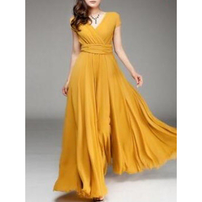 Women's Long Dress Maxi Dress Party Dress Casual Dress Swing Dress Modern Elegant Dress Daily Wedding Guest Date Slim Pure Color Short Sleeve V Neck Blue Black White Yellow Summer Spring